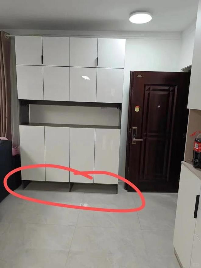 网友@喝不喝奶茶:悬空鞋柜底部的位置其实很鸡肋,鞋子放着放着就变得前仰后合,鞋也会越来越往里推,导致每次要拿鞋都要弯腰很良友,底下也至极容易脏。