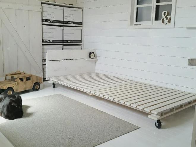 要是思要大略省钱少量的,折叠排骨架动作床铺这招倒也不错试一试,铺上软垫来了宾客也不愁没地睡了,而且收起来时果决找个场地就能放,不占空间。