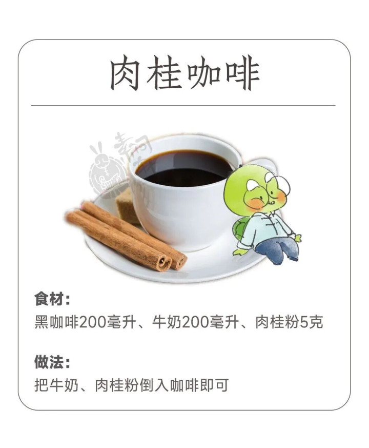 许多东谈主心爱在咖啡中加入肉桂粉亦然这个真谛,咖啡味苦性热,温燥寒湿、普及阳气,加入肉桂能柔和下焦,把火气料理一下,不至于耗散太过。